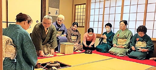 令和7年10月19日 セシオン杉並(杉並区梅里) に於いて第72回杉並区総合文化祭が開催され、点茶会にて表千家・裏千家・久田流で合同の役員席が設けられました。大板のお点前で後半の三席を久田流が担当致しました。